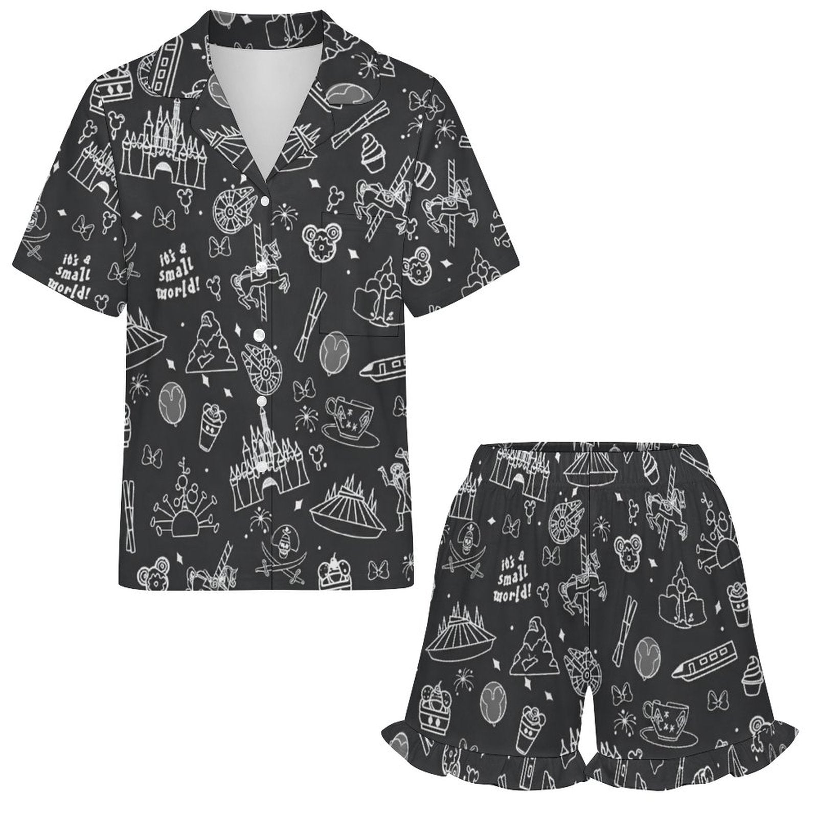 - Thoughtful Design: This Ruffled Short-Sleeve Pajama Set features a classic V-neck collar with a soft touch and button closure for easy on and off. The shorts legs also have ruffles, ensuring no waist or leg tightness. The side pockets are convenient for stashing your phone or hair tie, making it super easy to lounge at home and watch dramas.